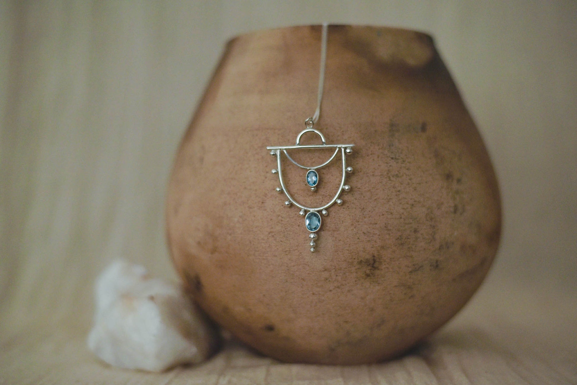 Each piece of the Oracle Collection is handcrafted in brass, sterling silver or gold-plating with high-quality gemstones. We have created a luxurious statement necklace that reminds the wearer of their inner Oracle whilst connecting them to the ethereal forces guiding nature and the cosmos.